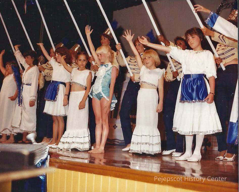 A color photograph of the end of the opening number are L. to R. Michelle Gagne, Stacy Bean, Cindy Oiler, kerry Coffin, Terri Cook, Lucie Bourgoin and Chressy GagneCollection