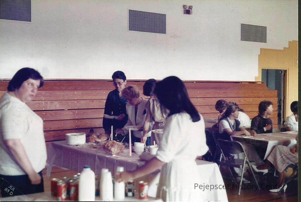 Sunday afternoon Judges Buffet Luncheon A color photograph of Barbara Brown listening to Patty Pickard with Micheline Phillippon Lizotte, Jan Sidelinger and Cecile Asselin. Photographer's # 3-18