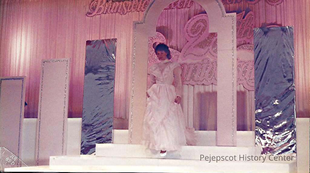A color photograph of the pre-judging of the Miss Brunswick Contestant #3 Vanessa Pierce in evening gown.