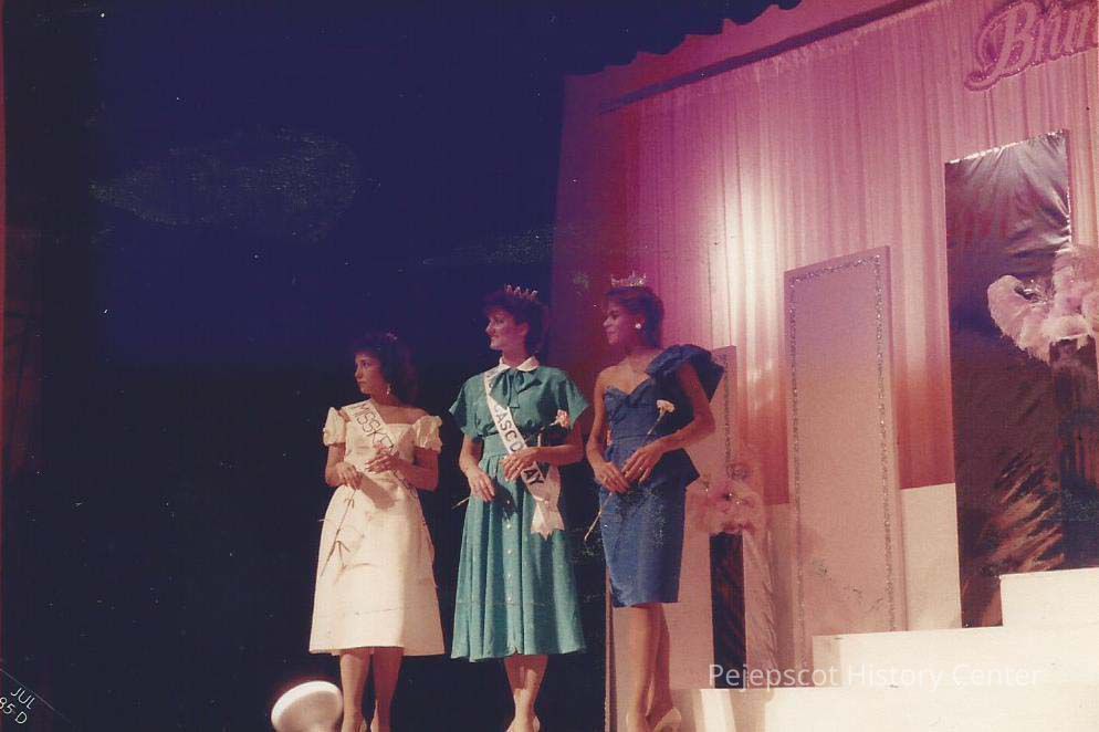 Teen Queen Talent Presentation A color photograph of the Miss Maine Representative Jane Brochu, Gretchen Harvey and Arville Jones.