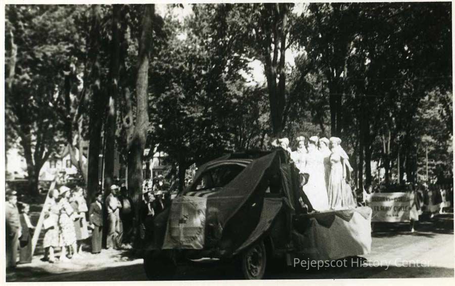 A B/W photograph of a float from the Brunswick Bicentennial parade. Dated 1939.