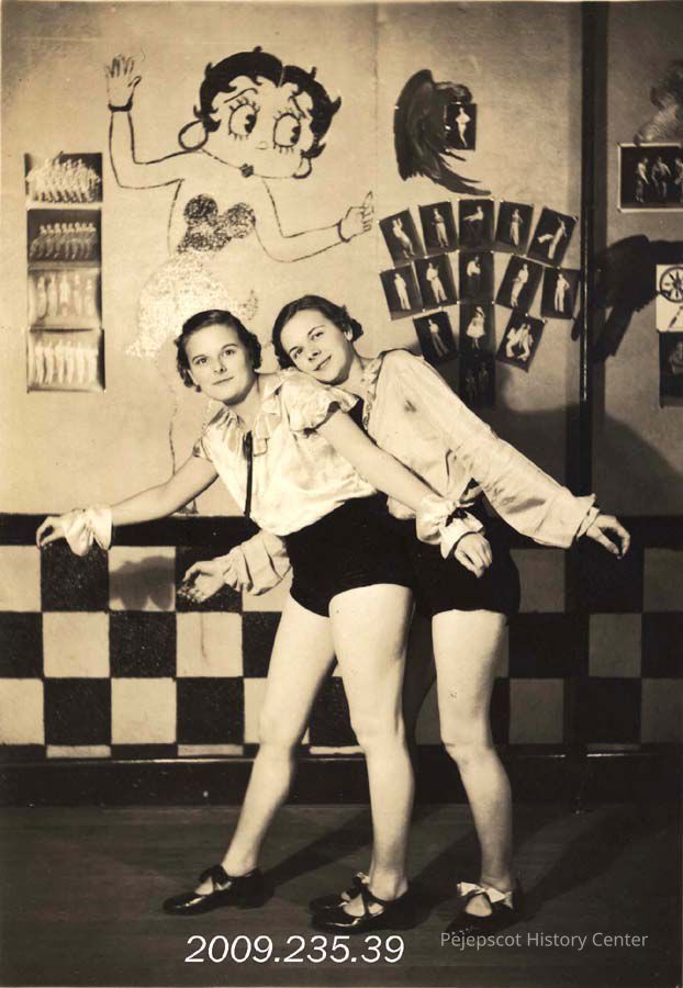 A color photograph of Leona and Evelyn St. Pierre in dance costumes and a dance pose.