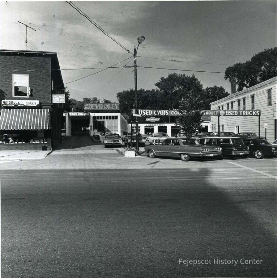 A photo of 149 Maine Street, showing Goodwin's Chevrolet. c. 1970