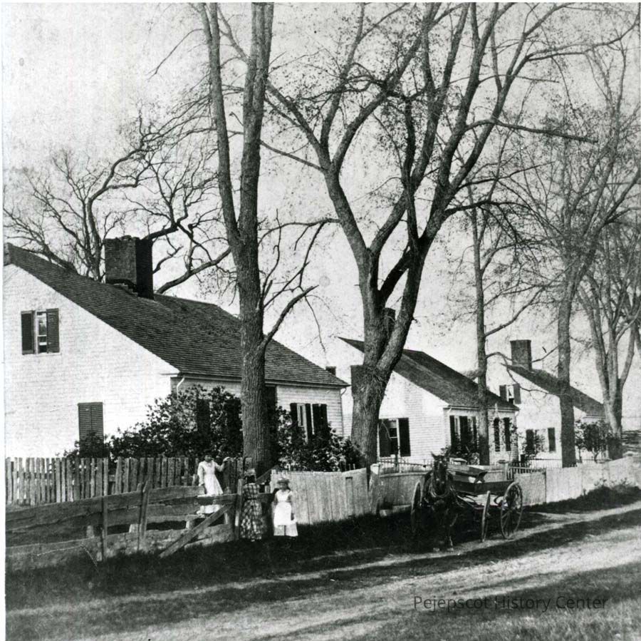 A B/W photograph of 3 houses on Summer St., Brunswick A copy of a very old print.