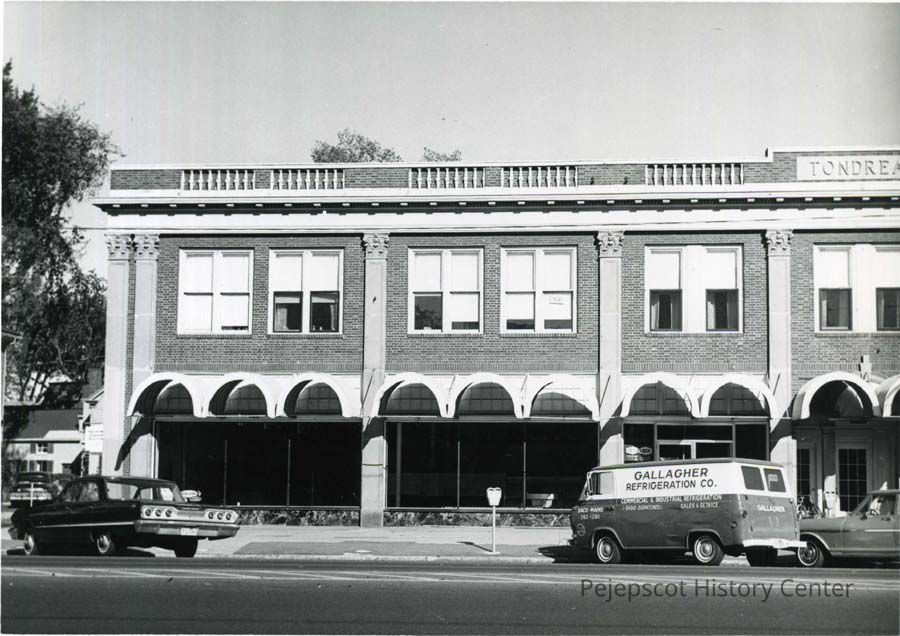 A B/W photograph of 87-91 Maine St., showing the Tondreau Block. c. 1967.