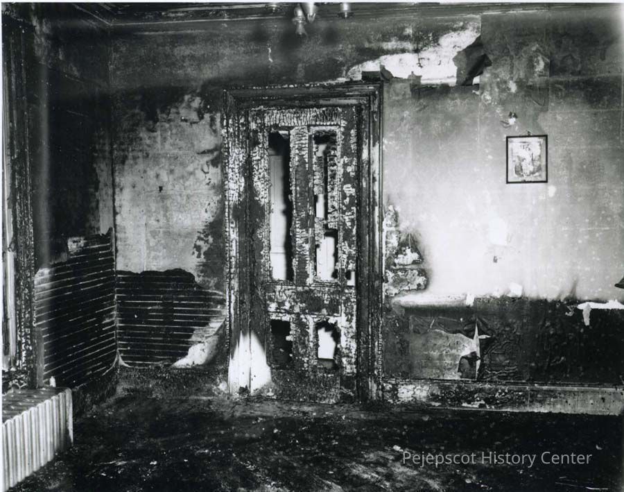A photo of a burnt out room in Mike Koucalus house fire. 1952