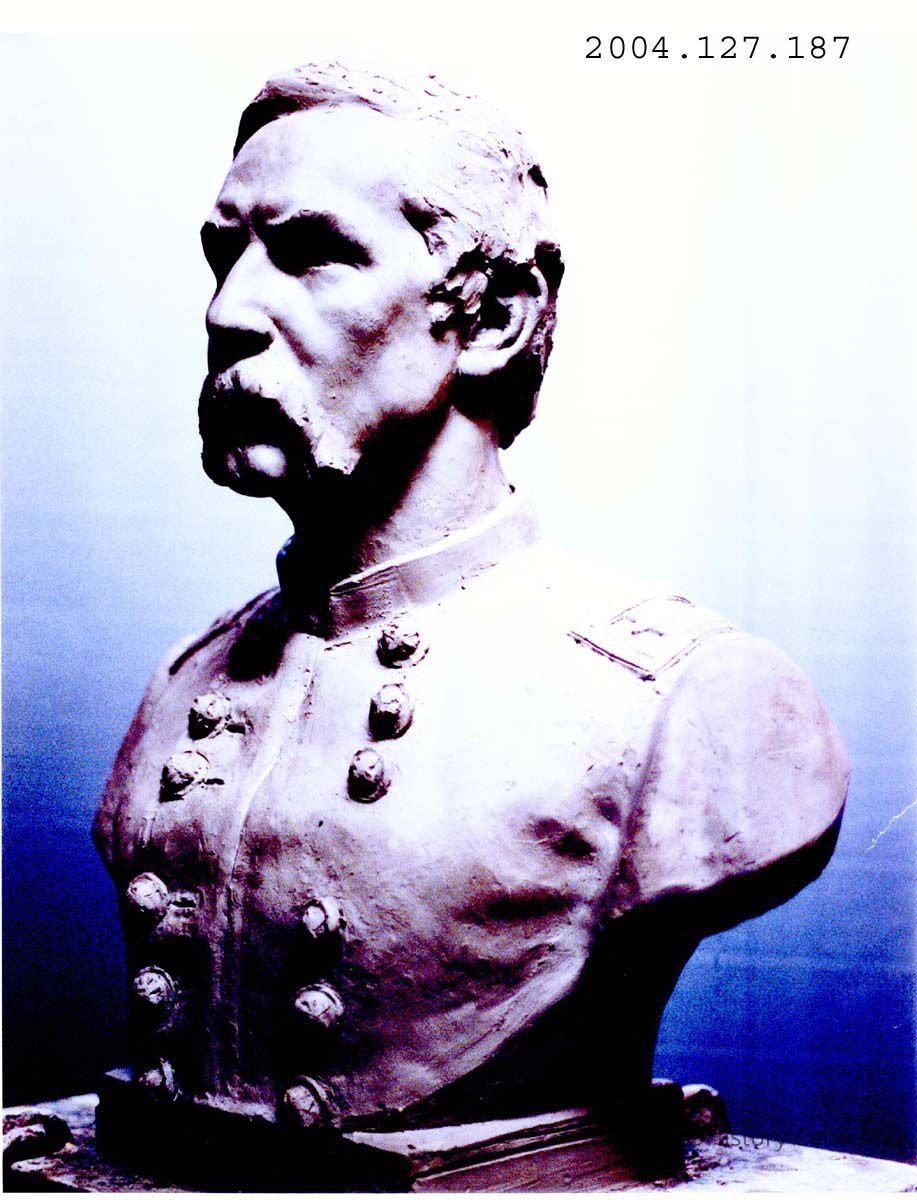 A B/W photograph of a clay bust of Joshua L.Chamberlain.
