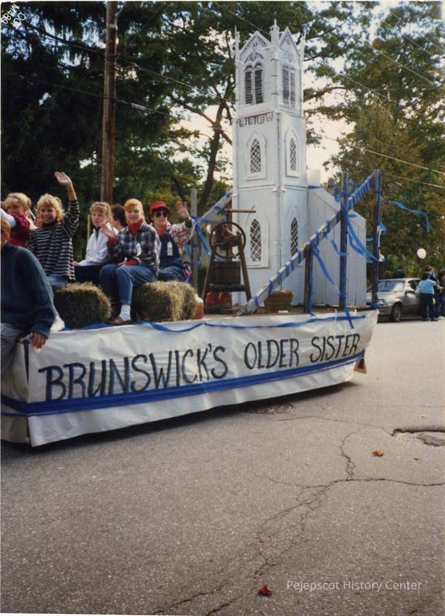 Anniversaries - Brunswick, 250th Anniversary - Brunswick, 250 Years a Town, 250th Anniversary Parade, Float, First Parish Church Float, Cleveland Street, Maine Street, Streets - Brunswick