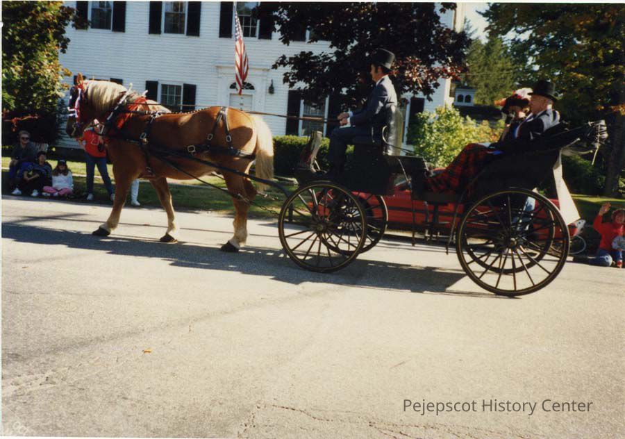 A color photograph of a horse and carriage in the 250th Anniversary parade.
