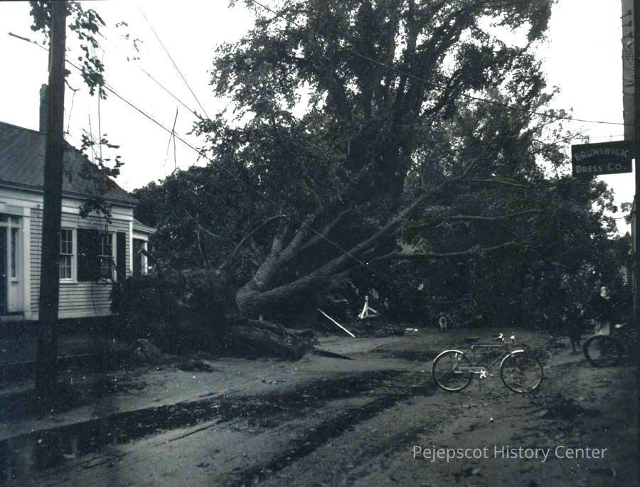A photo of a tree blown down on Middle Street. 9/12/1954.