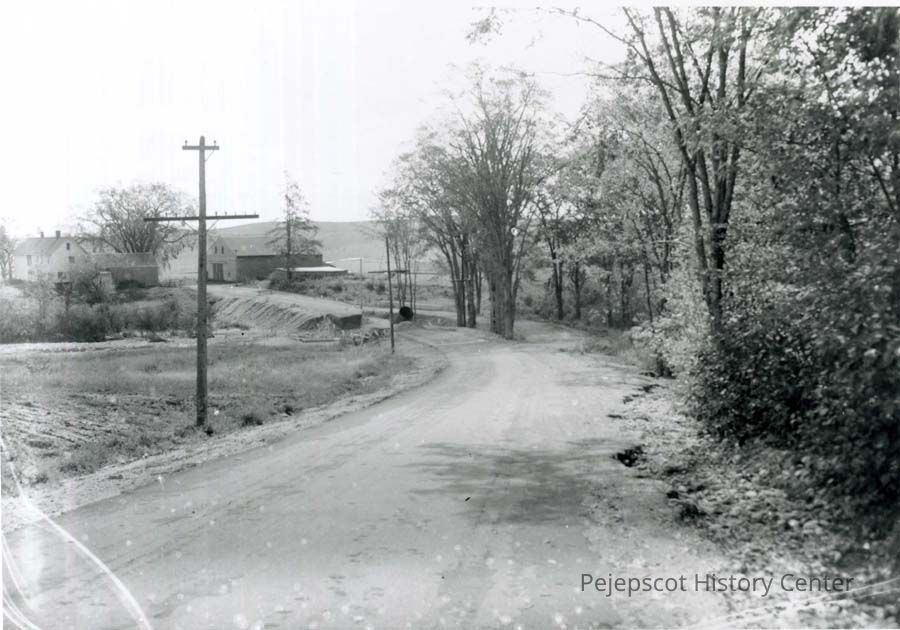 A B/W photograph of a washout on River Road at the foot of Rocky Hill. 9/12/1954.