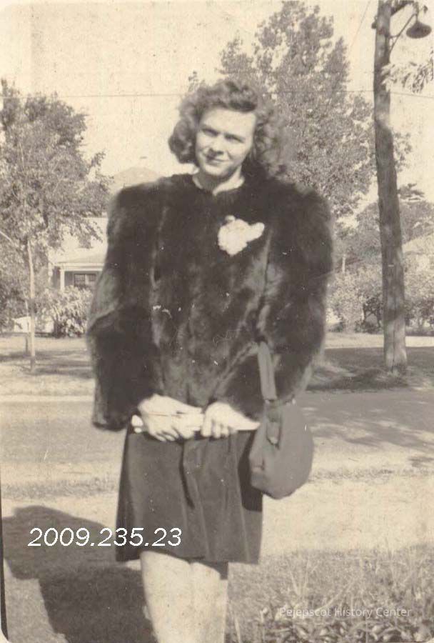 A B/W photograph of an unidentified woman wearing a fur coat..