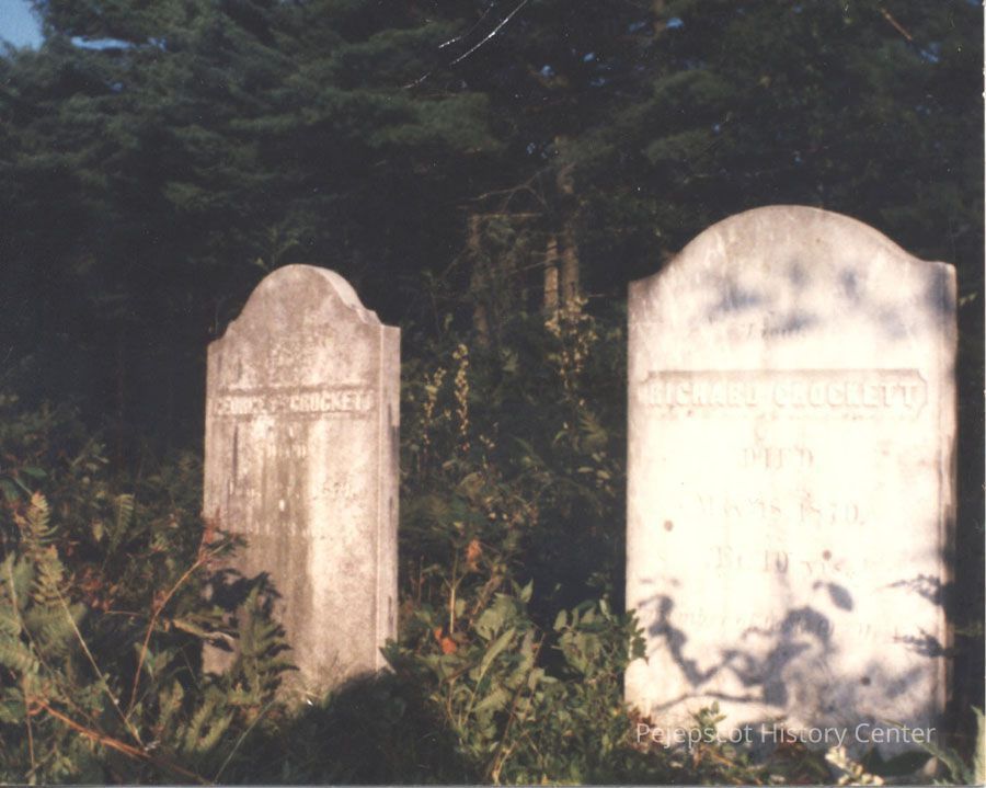 A color photograph of some Crockett gravestones. Marked on the back, "Richard Crockett Died May 18, 1870 Aged 10 yrs"