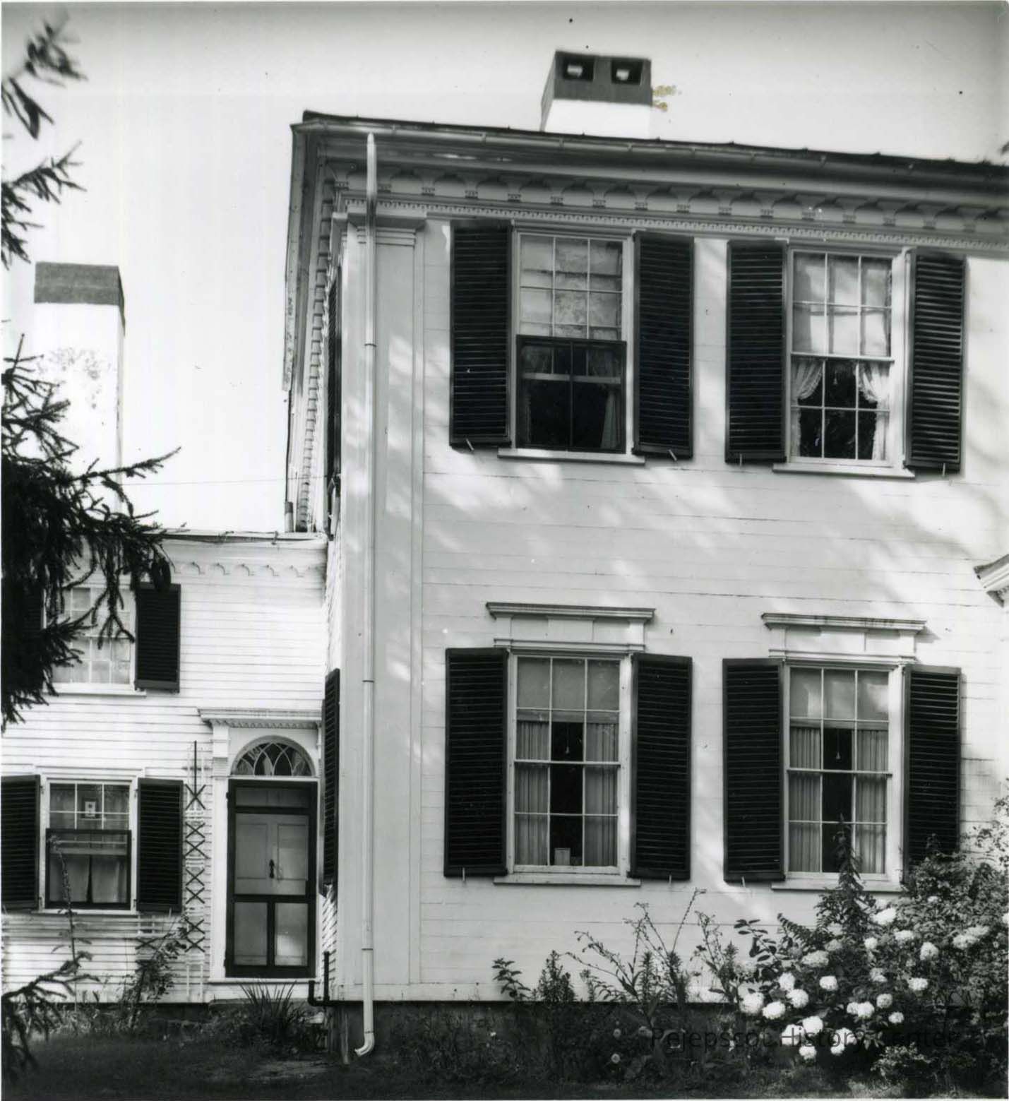 A B/W photograph of the details of the exterior of the Porter House.
