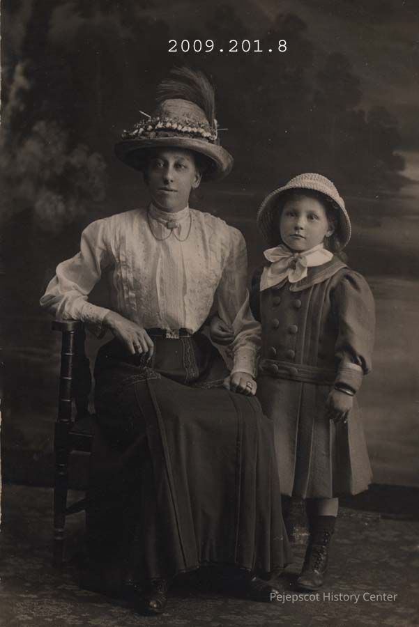 A B/W picture postcard of Elizabeth Sawers standing beside her srep mother Annie Turner Sawers, who is seated. The postcard is postally unused.