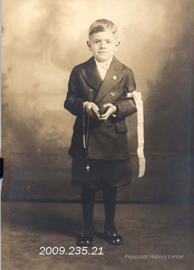 A B/W photograph of Gerald Russell St. Pierre all dressed up for communion.