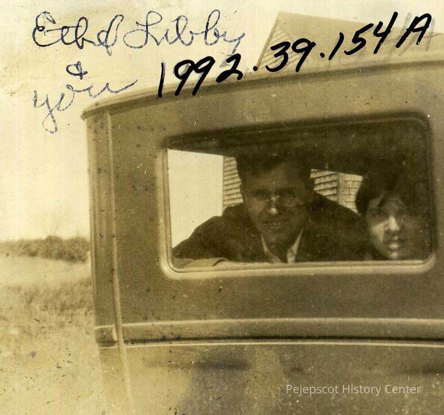 A B/W photograph of Irving Whitney, Miriam Stover Thomas & Etta Williams in a car. The accession paper work says there are 3 people in the photo. But actually there are only 2. On the photo is marked, "Ethel Libby and you". I assume the "you" means Irving Whitney.