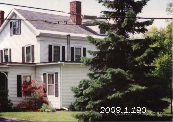 A color photograph of Joshua L. Chamberlain's boyhood home in Brewer, Maine. The room in the attic where he learned greek can be seen behind the tree.