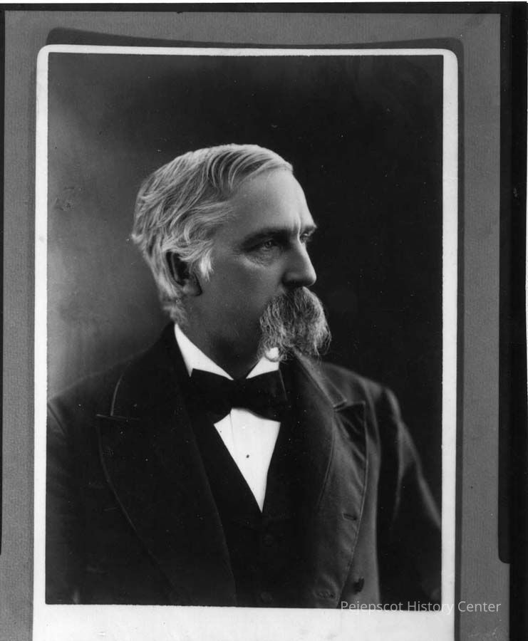 A B/W photo of Joshua L. Chamberlain c. 1876. Pepper & salt moustache. Right profile.