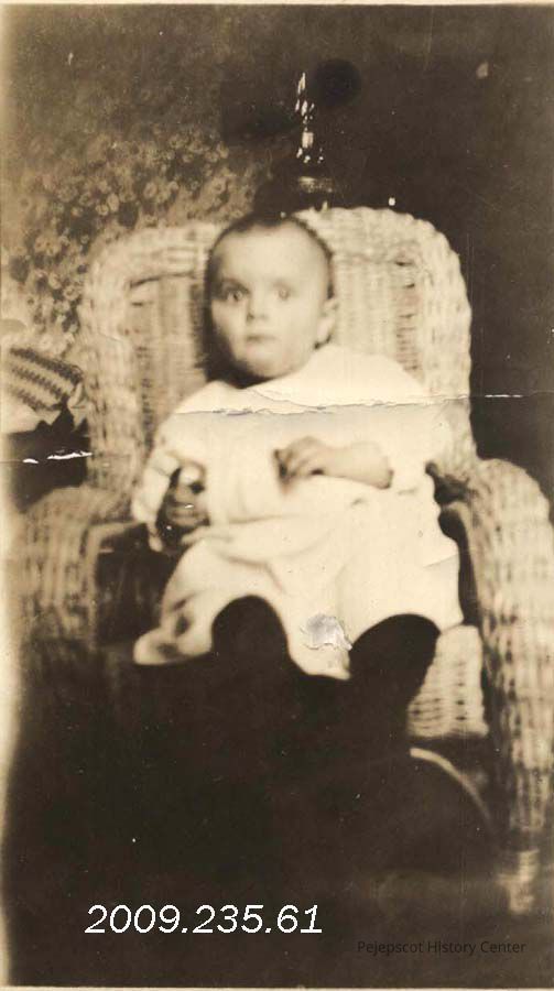 A B/W photograph of Leona E. St. Pierre. Marked on the back, "Leona E. St. Pierre 1.1/2 years old 1917".
