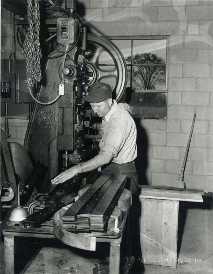 A B/W photograph of Lucien "Jimmy" Pinette at work in the Cabot Mill.