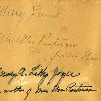 A B/W photograph of Mary Ann Libby Joyce, grandmother of Mrs. Eben Putnam.
