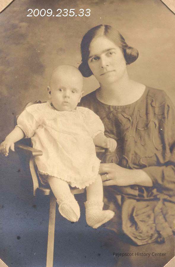 A B/W photograph of Mary Elizabeth St. Pierre holding Gerald St. Pierre.