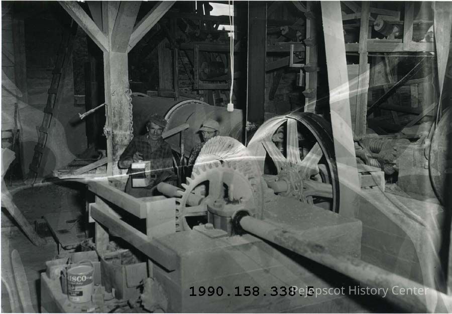 A photo of men and machinery at Topsham Feldspar Co. 1955