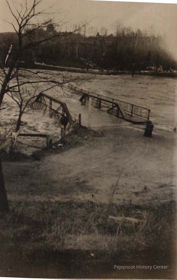 A photo of possibly the Swinging Bridge during 1936 flood.