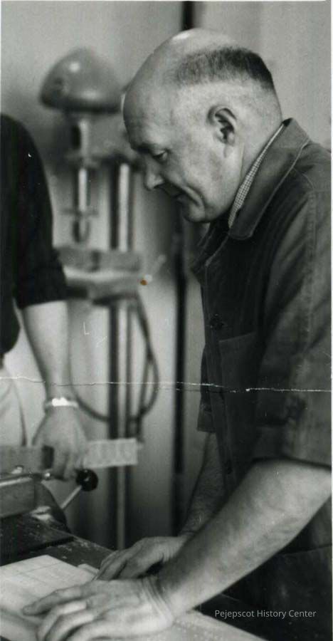 A photo of Robert Wescott sawing wood. Possibly at Brunswick High School. c. 1962