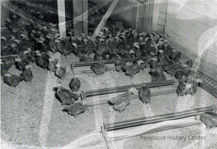 A B/W photograph of some chickens at Coleman Farms.