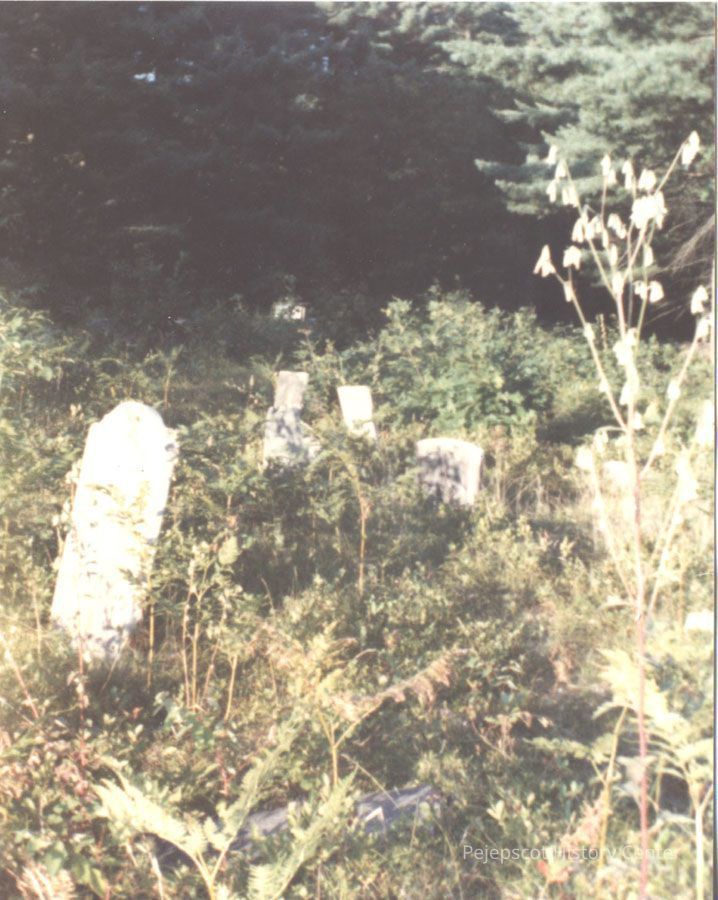 A color photograph of some gravestones. Marked on the back, "Taken Labor Day weekend 9/86 along road to Thomas Point Beach (Brunswick) Me. about a mile or so on left to the beach from here."