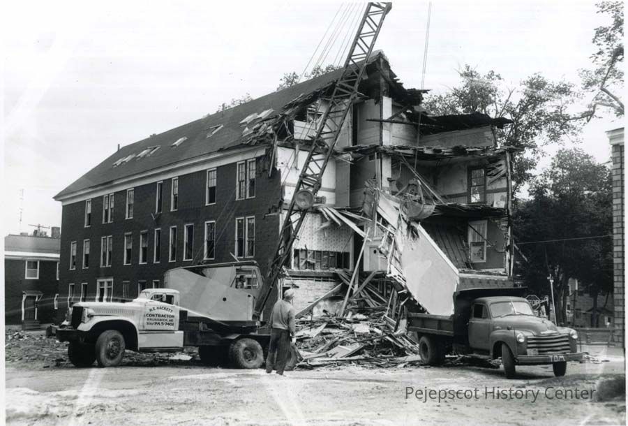 A B/W photograph of some Mill Street buildings being demolished to make room for the Route 1 by-pass.
