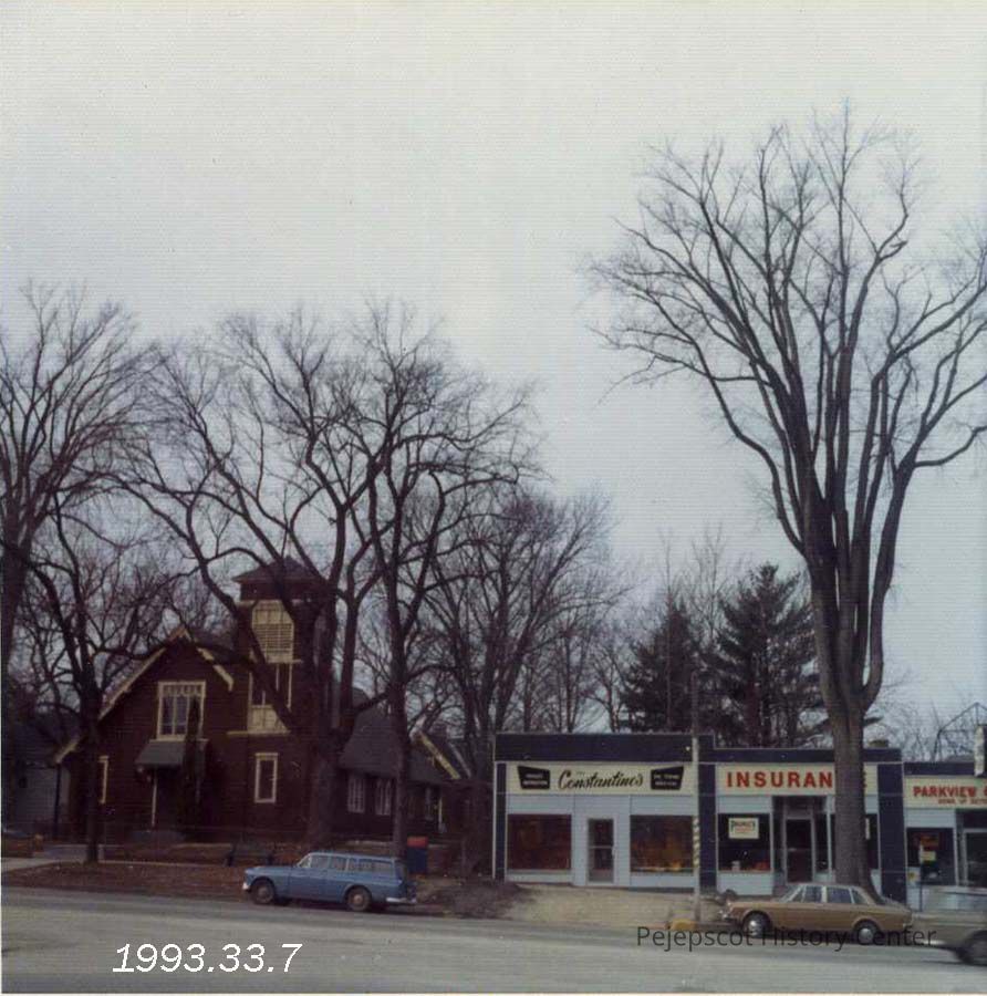 A color photograph of St. Charles Roman Catholic Church. For a time it was 55+ center, followed by People Plus, who in 2010 moved to the Union Street School. After they moved out, the church was razed for to make room for an inn. 3/1973.