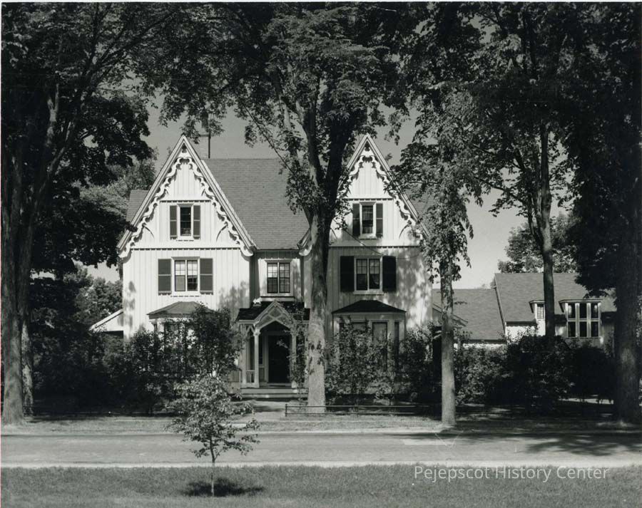 A B/W photograph of the Brody House at 256 Maine Street. It was built in 1849 and is now (1992) owned.by Bowdoin College.