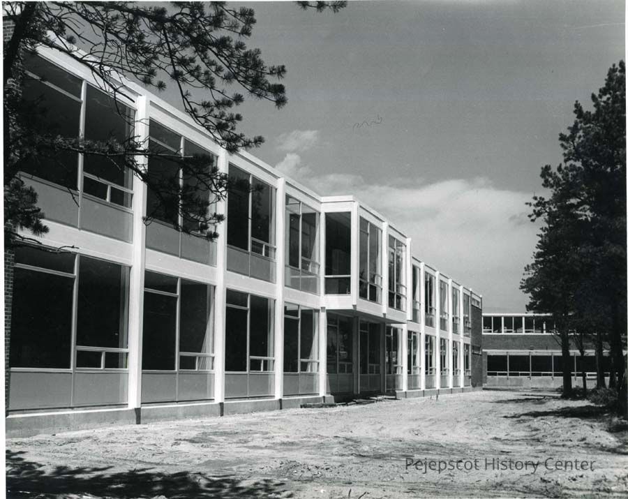 A B/W photograph of the Brunswick Junior High School, Barrows Drive & Columbia Avenue. It was completed in 1960..