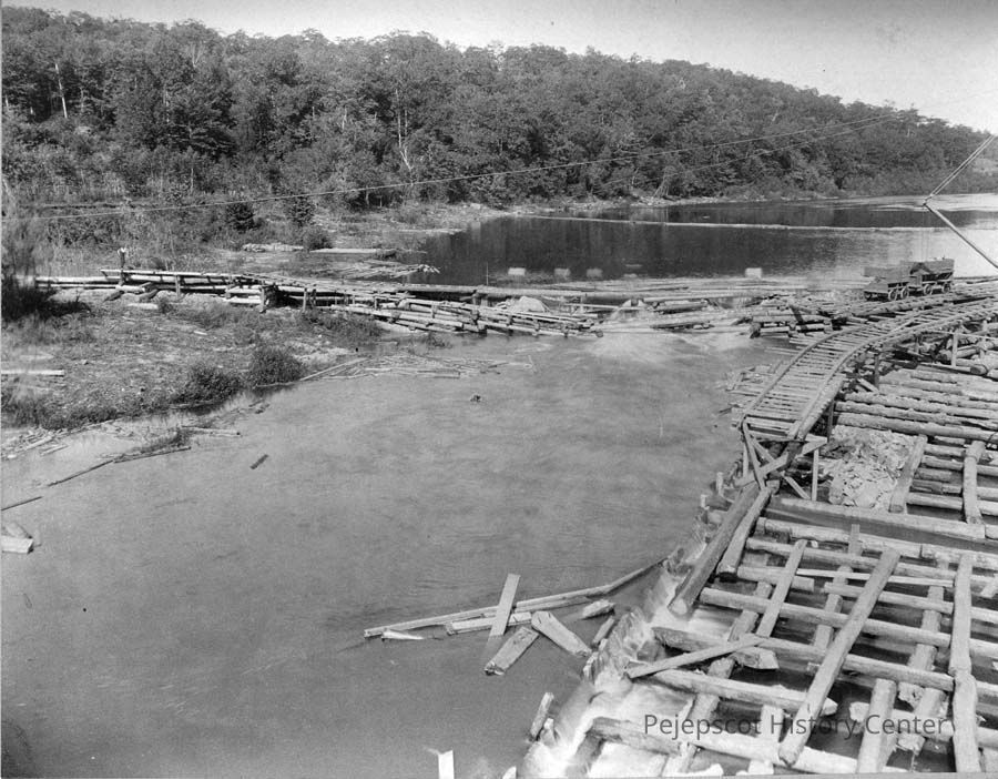 A photo of the construction of the dam at Pejepscot. 9/21/1893