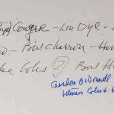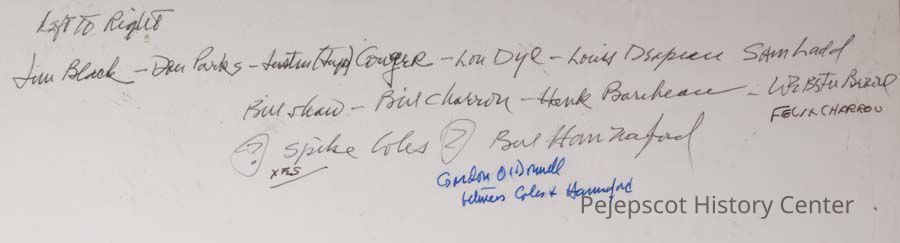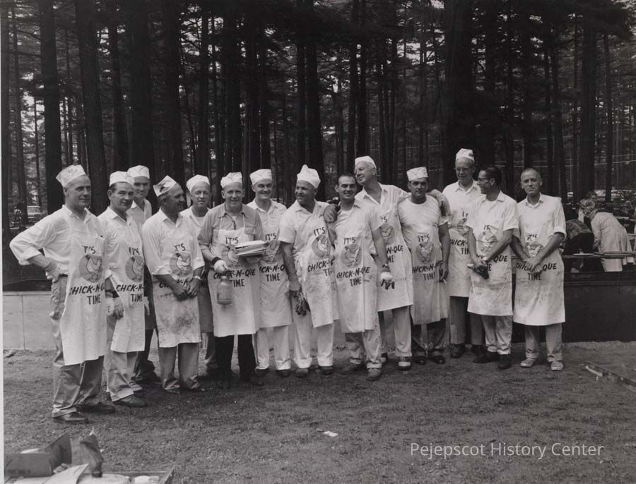 A B/W photograph of the cooks at a Rotary BBQ. The names of some of the people is on the back. 8/6/1948.