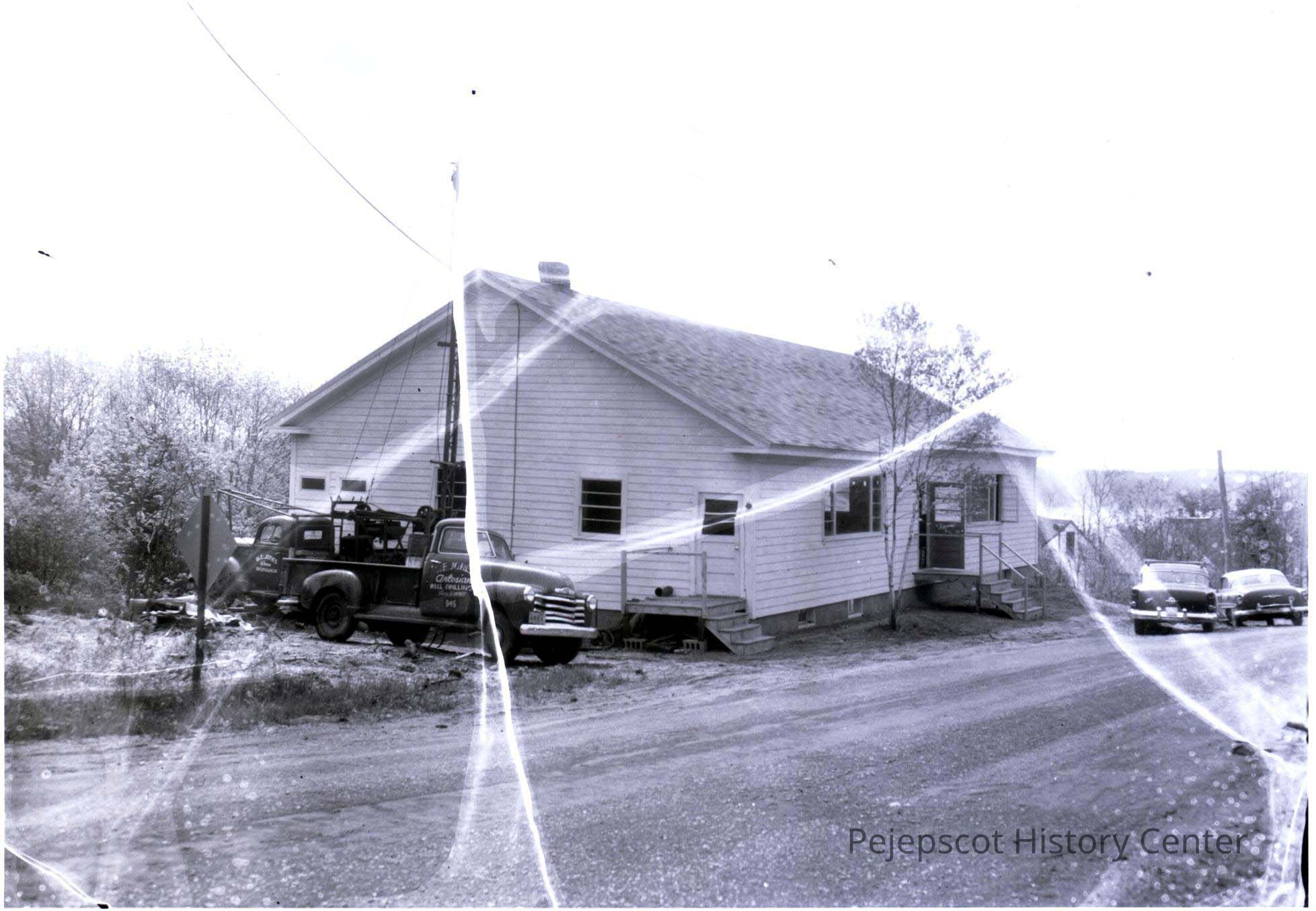 A B/W photograph of the Cundy's Harbor Community Building June 1, 1955.