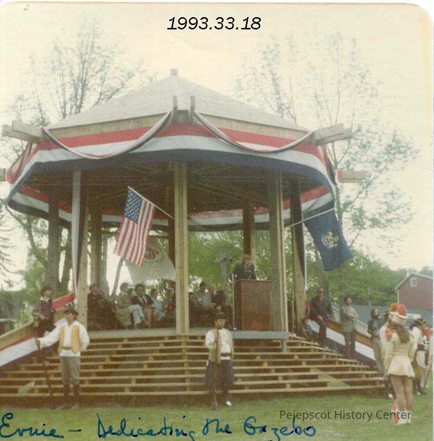 A color photograph of the dedication of the Gazebo at the south end of the Mall.