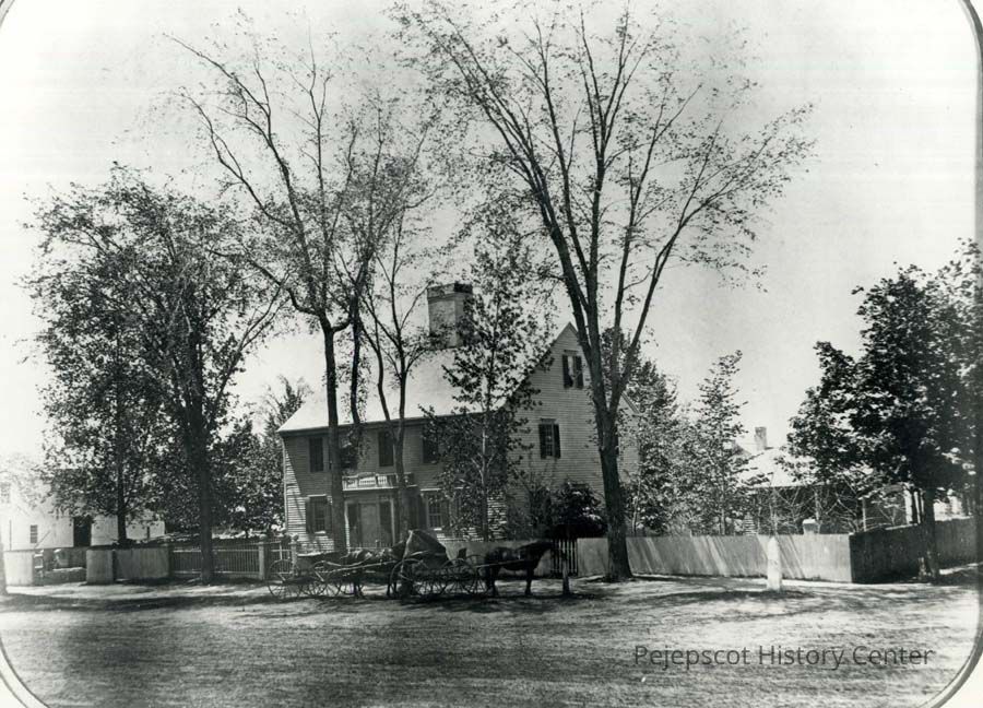 A B/W photograph of the Dunlap-Lincoln House formerly at Maine & Lincoln Streets. Moved to 3-5 Lincoln Street in 1895. See Notes & Legal