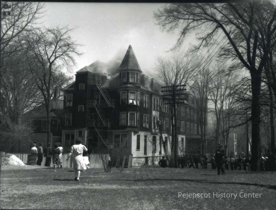 A B/W photograph of the Hotel Eagle fire, Middle Street, Brunswick.