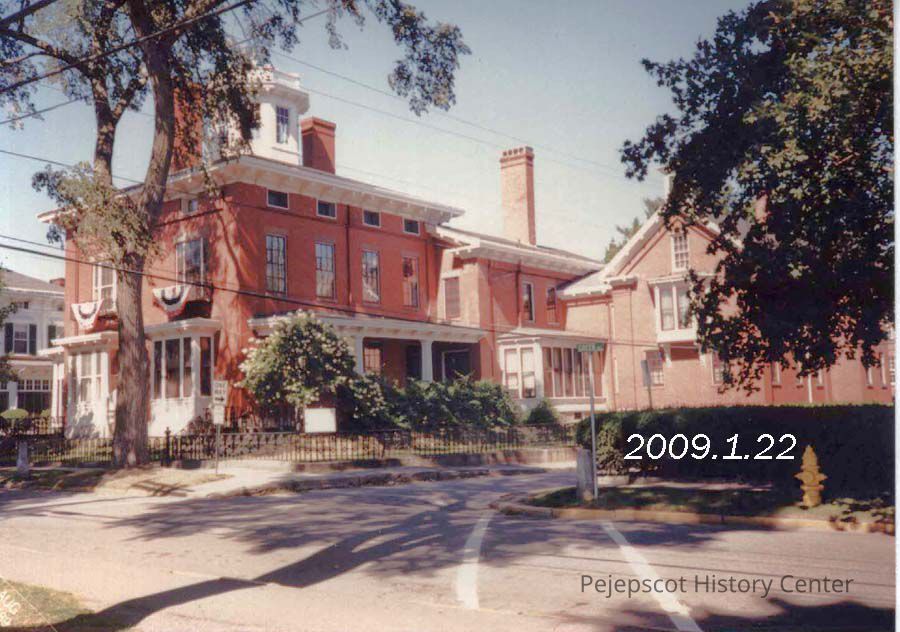 A color photograph of the house at corner of Green and Park Row (159). The Skolfield Whittier House and the PHS offices. 08/24/1989