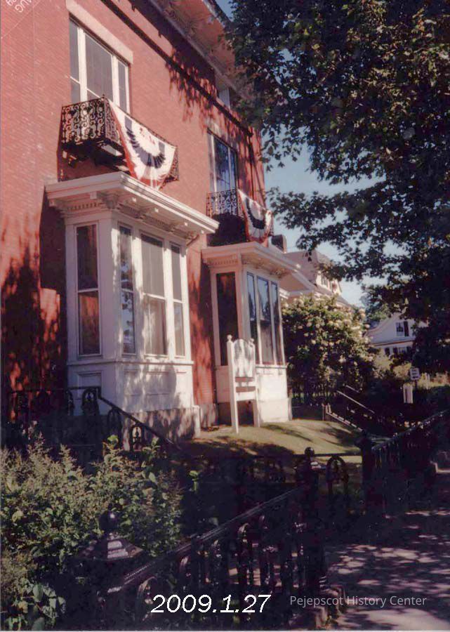 A color photograph of the house at corner of Green and Park Row (159). The Skolfield Whittier House and the PHS offices. 08/24/1989