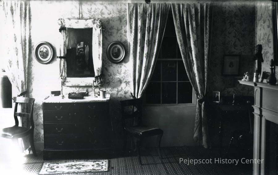 A B/W photograph of the NW Chamber, second floor of the Cleaveland House, 75 Federal Street.