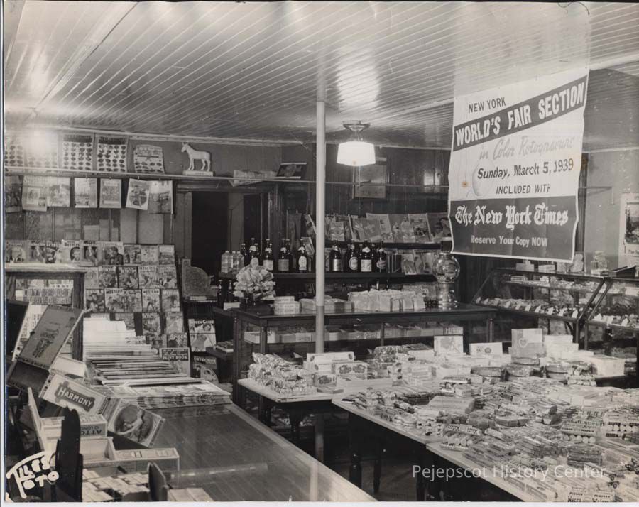A B/W photograph of the interior of the Kennebec Fruit Co. store. 142 Maine Street 1939