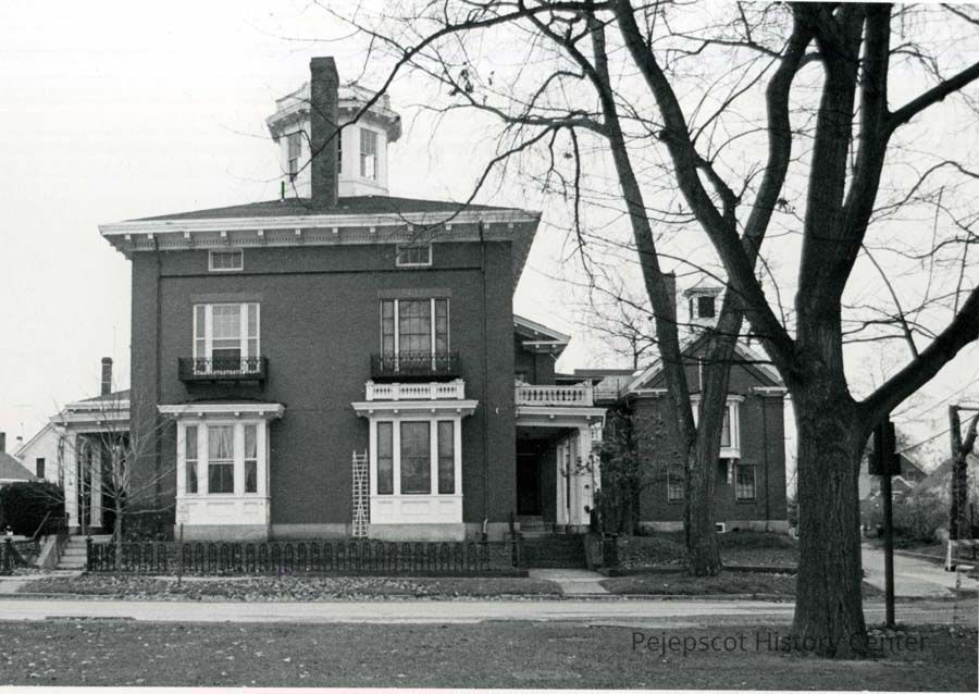 A B/W photograph of the Skolfield Whittier House. The photo was taken from the Mall.