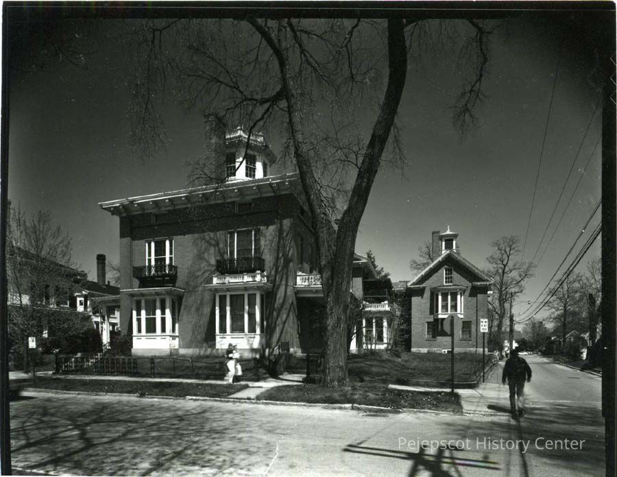 A B/W photograph of the Skolfield-Whittier House. The photo was taken from the Mall.