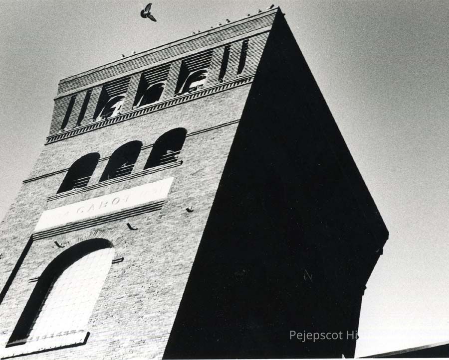 A photo of the tower of Cabot Mill.