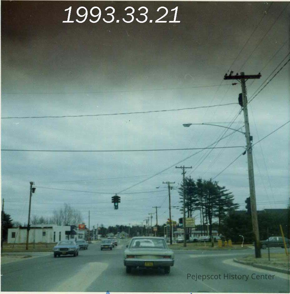 A color photograph of the traffic light at the Naval Air Station. You are looking towards Bath (east). 3/1973.